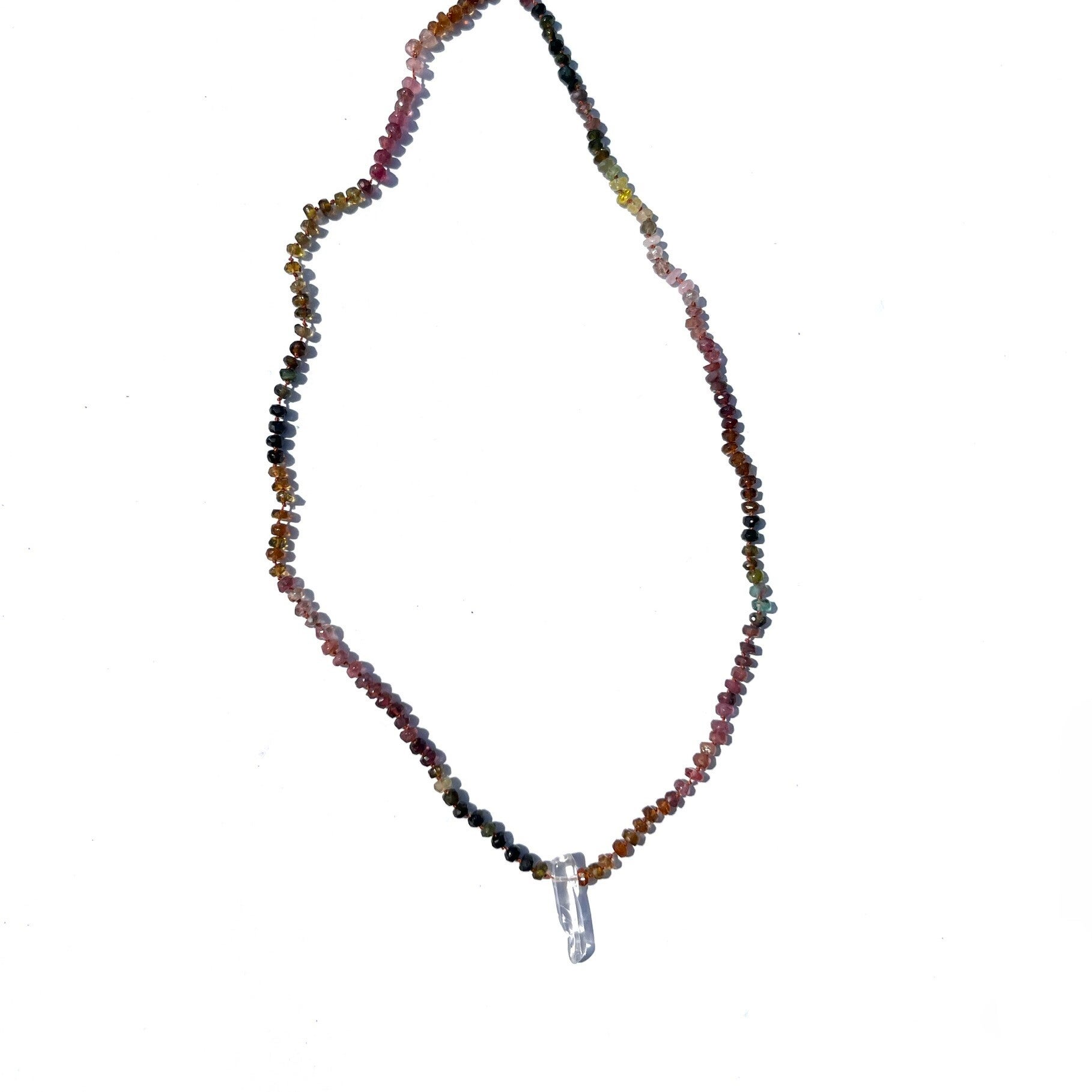 Handgeknoopte ketting met een gold filled sluiting. Gemaakt van verschillende gekleurde edelstenen.